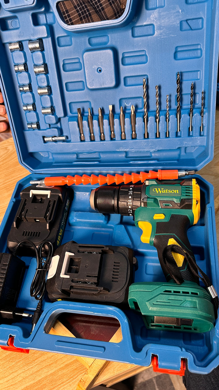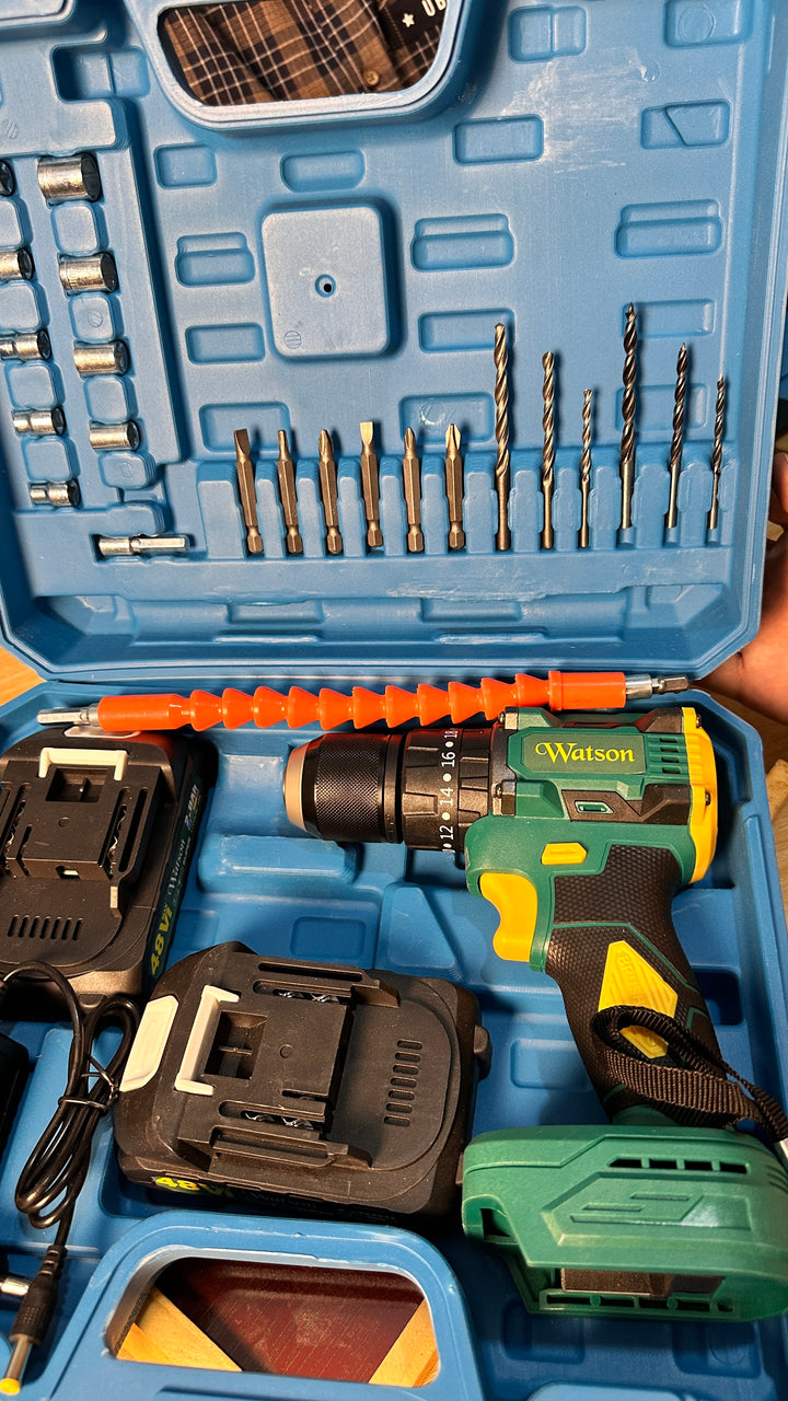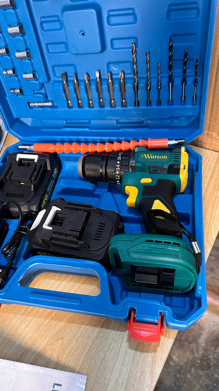 This powerful drill machine and tool kit comes equipped with a chargeable 48 V lithium battery and over 25 tools. With its versatile battery life and extensive tool selection, you'll always have the necessary equipment to tackle any project efficiently and effectively. From DIY enthusiasts to professional contractors, the Watson Drill Machine + Tool Kit is a must-have for any tool collection.